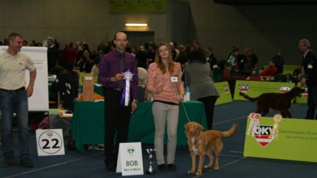 Po absolvování 4 výstav se stal Junior šampionem Rakouska a dne 25. 2. 2012 získal ocenění nejvyšší na IHA GRAZ – V1 CACA, CACIB, BOB. A to i přesto, že byl vylínalý.